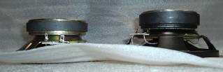 で、口径の同じスピーカーが見つかったので、単純に取っ換えてやろうと思ったら、ここでアクシデントが。 なんと、JVCの方はさすが音が良いだけあって背が高い上に、フレームもデカいのだ。 というコトはケースの加工が必要だということだ。まあ面倒だが、仕方ない。 |
