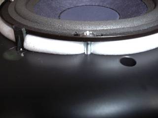 にしても、ケースの高さが足りないので、仕方ないのでケースから浮かせてマウントする。 スキ間を空けたままだと音が漏れるので、発泡スチロールで密閉。ネジ穴はテキトーに見当つけて空ける。 右は、シールに使った棒状の発泡スチロール。 |